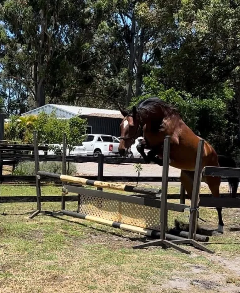 Noblewood Park Beretta is a 16.3hh bay Holsteiner stallion bred by Noblewood Park Holsteiner Stud in Western Australia. He is sired by the renowned Burggraaf, a son of the legendary Landgraf I, and out of the premium imported mare Cantara by Cantus, combining two of the most influential European jumping bloodlines known for producing elite performance horses with excellent temperaments and rideability. Cantara herself was an imported Holsteiner mare who competed successfully up to 1.50m in Europe before being acquired as a broodmare for her exceptional pedigree and proven athleticism. She was widely regarded for her powerful hindquarter, classic Holsteiner scope, and outstanding trainability, traits she consistently passed on to her progeny, including Beretta.